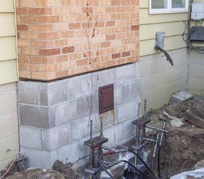 Our team uses helical piers to restore support to the foundation, which corrects leaning or tilting of the chimney. We install these foundation piers deep into the underlying soil, then we attach the piers to the foundation with brackets to provide permanent foundation support.