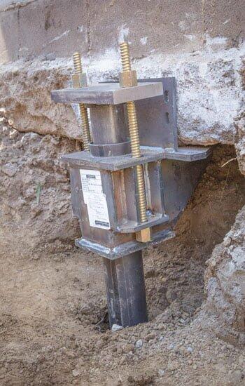 Steel brackets are then used to attach each pier to your home’s foundation footing. This helps stabilize the piers and put them in the correct position before they are drilled into the ground.