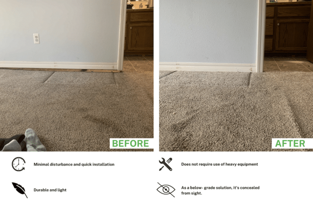 Polylevel: A lightweight injection foam called polyurethane, also known as Polylevel, can be used to fill the void underneath the home to help raise one’s foundation. It is lightweight and durable; it can hold up to 4,000 lbs per square foot on its own.